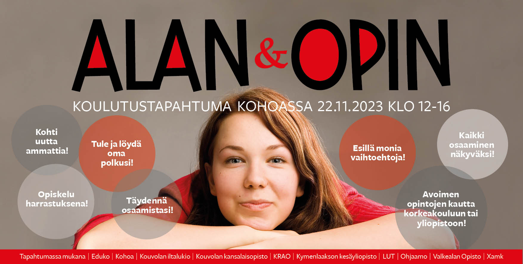 Alan & Opin -koulutustapahtumassa alueen toimijat esittelevät monipuolisesti palvelujaan ja koulutustarjontaansa. Tarjolla on tietoa niin yliopisto-opinnoista, ammatillisista opinnoista, täydentävistä opinnoista kuin harrasteopinnoistakin. Tapahtuma on maksuton.